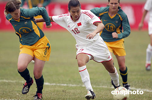 | 女足四國錦標(biāo)賽一月三十日在福建泉州繼續(xù)進(jìn)行,在中國隊(duì)與澳大利亞隊(duì)的比賽中,中國隊(duì)在下半場的四分鐘內(nèi)憑借潘麗娜、韓端和任麗萍的三粒進(jìn)球完勝澳大利亞隊(duì)。中新社記者:盛佳鵬