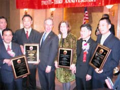 彭博市長和顧雅明理事長隨后在會上為六個機(jī)構(gòu)和個人頒獎,香港匯豐銀行資深副總裁何永雄榮獲小型企業(yè)貸款服務(wù)獎;美國福華商會會長王家鶯榮獲小商家杰出人士獎;拉瓜地亞社區(qū)學(xué)院榮獲社區(qū)服務(wù)獎;新任州眾議員孟廣瑞榮獲公共服務(wù)獎;紐約韓人會會長金光植榮獲社區(qū)友誼獎等。最后,顧雅明并代表該會為彭博市長頒發(fā)一項“廉政服務(wù)獎”。