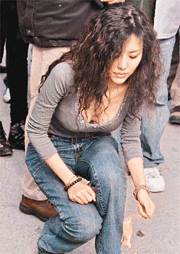 梁朝偉最近和“泡菜妹”特別有緣,不但與氧氣美女李英愛(ài)相見(jiàn)歡,又與韓性感女星炫英傳深夜幽會(huì),在“韓城攻略”里更周旋在趙漢娜、曹秀鉉、崔汝鎮(zhèn)三位女模出身的“泡菜妹”中間,尤其一頭黑長(zhǎng)發(fā)的曹秀鉉是韓國(guó)著名MODEL,第一次拍戲就遇到“電眼”梁朝偉,盡管語(yǔ)言不通,還是被偉仔電得七葷八素,據(jù)說(shuō),她和其他演員拍戲都OK,一碰到偉仔的眼神就NG,只得紅著臉和工作人員說(shuō)Sorry!