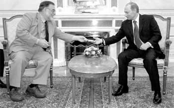獲得如此贊譽(yù)的科波拉自然也懂得“禮尚往來(lái)”的道理,他微笑著贊美了普京總統(tǒng)在蘇聯(lián)軍隊(duì)解放奧斯威辛集中營(yíng)60周年典禮上的講話。普京在這次講話中表示,他為俄羅斯現(xiàn)存的反猶主義感到“恥辱”!白吭降陌l(fā)言”,科波拉說(shuō),“但是你看上去比電視里更年輕!弊鳛閺倪b遠(yuǎn)國(guó)度帶來(lái)的珍貴禮物,科波拉還贈(zèng)送給普京總統(tǒng)一張《迷失東京》的DVD。這部由他女兒索菲婭·科波拉執(zhí)導(dǎo)的都市情感片,在去年的奧斯卡頒獎(jiǎng)典禮上獲得了最佳原著劇本的殊榮?撇ɡ湴恋叵蚱站┛偨y(tǒng)表示,他和他的女兒都是在32歲的時(shí)候拿到第一尊小金人(出生于1939年的科波拉,在1971年憑《教父》第一集獲得最佳改編劇本),普京總統(tǒng)機(jī)智地回應(yīng)道:“看來(lái)你的孫女必須也做到這一點(diǎn)了!