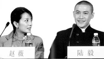 《情人結(jié)》的首映活動(dòng)在昨日下午2時(shí)拉開,記者們都沖著趙薇而去,整個(gè)發(fā)布會(huì)剛開始就是趙薇和陸毅為6對(duì)新人做伴娘伴郎的“戲”,這種形式自然讓記者們“眼前一亮”。在現(xiàn)場(chǎng),為了不搶新郎新娘的風(fēng)頭,趙薇與陸毅以一身樸素的裝束出場(chǎng)。他們更帶來(lái)一瓶紅酒,為6對(duì)新人統(tǒng)統(tǒng)斟上,然后為他們切下蛋糕。在主持人李霞等的串場(chǎng)下,在婚禮進(jìn)行曲中,新郎新娘接吻、交換信物……現(xiàn)場(chǎng)氣氛相當(dāng)熱鬧,新人臉上也是寫滿了幸福,有新娘被感動(dòng)得流淚,稱這是自己一生最難忘的最激動(dòng)的事情。對(duì)于這樣一對(duì)明星伴郎伴娘記者們自然是狂拍不停,不過(guò)大家爭(zhēng)搶鏡頭讓現(xiàn)場(chǎng)一片忙亂,還險(xiǎn)些打了起來(lái)。