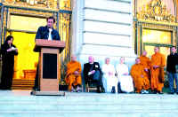 據(jù)悉,集會(huì)有一百多人參加,紐森市長(zhǎng)、國(guó)會(huì)議員普洛西、蘭托斯及州議員里諾等都派代表出席。