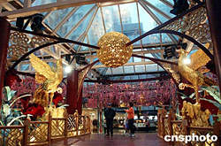 農(nóng)歷新年將至,香港太古城以鳳凰為主題,兩只15呎高的鳳凰屹立在雞冠花的花林中,商場一片花團(tuán)錦簇,平添節(jié)日氣氛。作者:洪少葵