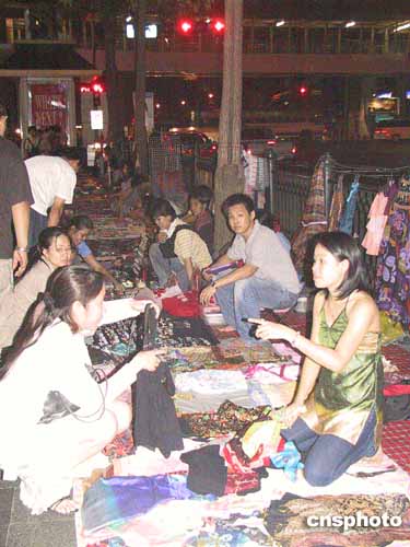 夜晚的曼谷則霓虹閃爍,一派歌舞升平景象。市中心五彩燈下的人行道上,擺滿了各式旅游商品,游人穿梭不息。在記者住宿的拉馬達(dá)街,晚上十二點(diǎn)多,“全家福”燒烤大排檔依然熱鬧。他們和附近的迪廳、酒吧等娛樂場所一樣,要“鬧”到第二天凌晨二時(shí)才會(huì)打烊。隔街的“七一一”連鎖便利店,二十四小時(shí)營業(yè),不時(shí)有興致沖沖的購物者推門而入。