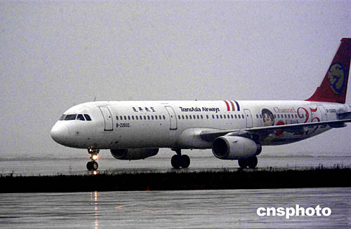 臺(tái)灣復(fù)興航空公司的A321飛機(jī)在濃霧中平穩(wěn)地降落在廣州新白云機(jī)場(chǎng)。作者:劉衛(wèi)勇