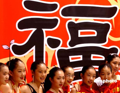 美國洛杉磯一班華人少女聚到高大的福字下,在中國農(nóng)歷新年前夕先感受喜氣洋洋的氣氛。中新社記者:賈國榮