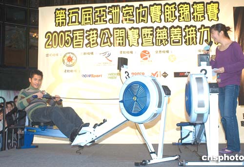 歌影紅星郭富城2月5日在香港出席《第五屆亞洲室內(nèi)賽艇錦標賽暨慈善接力賽》記者會,獲委任為“亞洲劃艇之星”,并即場示范室內(nèi)賽艇運動。作者:鄧慶樂