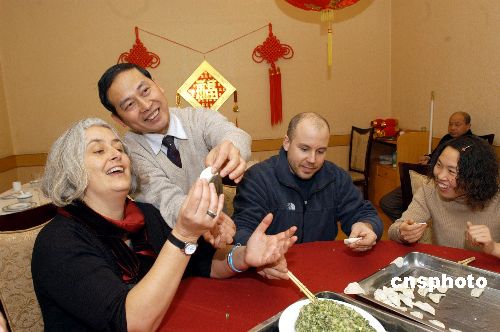 | 2月7日,“無國界醫(yī)生組織”湖北襄樊艾滋病治療和關(guān)懷項(xiàng)目辦公室的外國專家們,度過了一個(gè)充滿濃郁中國氣息的節(jié)日。新西蘭的琳達(dá)女士、瑞典的尼科拉斯先生同中國同行一起掛中國結(jié)、包餃子,用筷子吃中餐,感受地道的中國年。作者:邱厚強(qiáng)