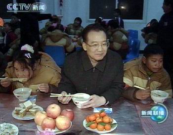 下午,溫家寶來(lái)到邵店鄉(xiāng)籽粒村和丁樓村。村民仝保良、許讓的兒子和兒媳因患艾滋病去世,只留孤寡老人和孩子,家庭生活十分困難。在仝保良家,溫家寶親切詢(xún)問(wèn)老人的身體狀況和孩子的學(xué)習(xí)情況,叮囑老人保重身體,一定要把孩子拉扯大。在許讓家,溫家寶神情肅穆地看著她兒子、兒媳生前照片,關(guān)切地詢(xún)問(wèn)老人的生活情況,過(guò)年能不能吃上餃子,有什么困難。許讓老人激動(dòng)地說(shuō),總理冰天雪地來(lái)看我很不容易,感謝總理,感謝黨和政府。溫家寶對(duì)隨行的當(dāng)?shù)馗刹空f(shuō),對(duì)于這樣的困難家庭,政府一定要給予更多的關(guān)心和照顧。