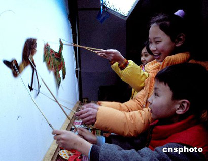 孩子們自編自演皮影戲歡樂(lè)度春節(jié)