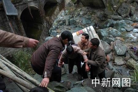 由于汽車翻下六米多高的河床,車體嚴(yán)重變形,當(dāng)場(chǎng)遇難的香港游客還壓在車內(nèi),村民們馬上跑步回家,拿來(lái)鋼釬、電鋸,將變形的車體分解,龍勝縣公安局干警吳政宣從車下爬進(jìn)車內(nèi),將遇難者從車內(nèi)抬出,廖瑞發(fā)叫自己的兒子廖志和,將遇難者遺體背上公路。