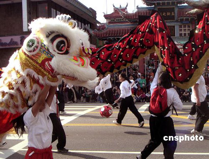 美國洛杉磯華埠二月十二日舉行第一百零六屆金龍大游行。圖一為賀歲彩車駛過唐人街,向華洋民眾祝賀中國農(nóng)歷雞年新春佳節(jié)的到來。圖二為華人和各種族民眾共同歡慶中國農(nóng)歷雞年。圖三為廣東潮州會館的金雞仙女彩車,為美國洛杉磯華埠二月十二日舉行的一百零六屆傳統(tǒng)金龍大游行錦上添花。 作者:賈國榮