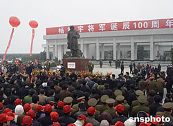 二月十七日上午,楊靖宇將軍誕辰一百周年紀(jì)念大會在英雄故里河南駐馬店舉行,楊靖宇將軍原名馬尚德,一九0五年出生于駐馬店市確山縣李灣村?箲(zhàn)時期,他率領(lǐng)東北抗日聯(lián)軍轉(zhuǎn)戰(zhàn)于遼寧、吉林一帶達(dá)七年,一九四0年二月十八日與敵人遭遇,他打到只剩最后一顆子彈,自殺殉國。日本人將楊靖宇的遺體運到沈陽剖腹檢驗,見其胃腸中僅有草根、樹皮和棉絮等物。作者:胡珂