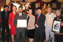 在熱鬧的新春聯(lián)誼會上,市大法學(xué)院向支持余百康上訴的市議員劉醇逸辦公室頒獎,感謝劉醇逸及其他的辦公室工作人員為余百康伸張正義所做出的努力。