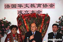 由法國從事華文教育的各界人士組織的法國華文教育協(xié)會(huì),二月十九日在巴黎成立。圖為國務(wù)院僑辦副主任趙陽(中)在成立大會(huì)上致辭。作者:鐘誠