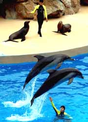 正月十五前夕,香港海洋公園向游人展示海豚表演,營造祥和氣氛,歡度雞年新春。作者:宋吉河