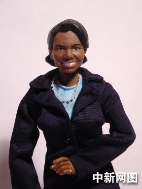 制造商“英雄制造者”公司從2月21日開(kāi)始銷售美國(guó)新國(guó)務(wù)卿賴斯的布娃娃玩具,這種布娃娃身高12英寸,穿著“深藍(lán)色褲子,粉藍(lán)色上衣,”還戴著人造珍珠項(xiàng)鏈,標(biāo)價(jià)是24.95美元(約合13.16英鎊)。