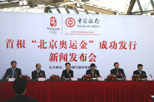 中國銀行股份有限公司今日還代表發(fā)行方和經(jīng)銷方將本次發(fā)行的具有特殊意義的二十九號一百克的“北京奧運金”捐贈給了第二十九屆奧林匹克運動會組織委員會作永久保留,表達社會各界對北京二00八年奧運會的祝福和期盼。