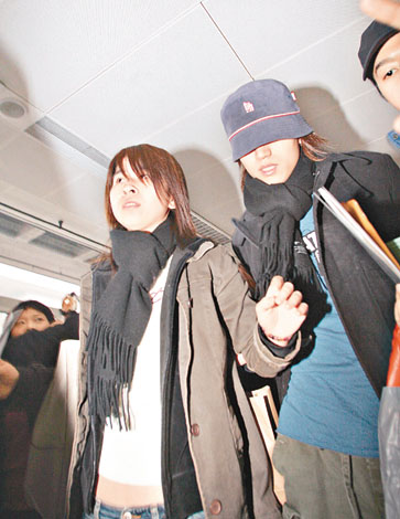 昨午十二時(shí)五十分,機(jī)場(chǎng)離境大堂的顯示牌顯示言承旭所乘班機(jī)的搭客該由離境大堂的B閘步出,豈料他卻在A閘出現(xiàn),過百名在B閘等候已久的歌迷獲悉后,即以極速?gòu)腂閘飛奔到A閘迎接,期間他們更一邊跑一邊大叫偶像名字,場(chǎng)面十分震撼。言承旭一貫地頭戴漁夫帽,面帶笑容表現(xiàn)友善,不時(shí)回頭向歌迷報(bào)以微笑。