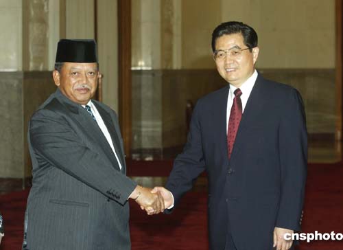 圖:胡錦濤主席會(huì)見(jiàn)馬來(lái)西亞最高元首西拉杰丁