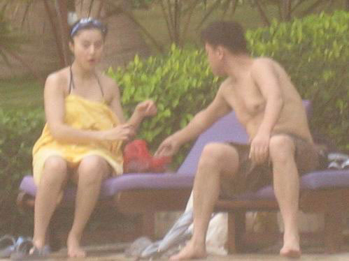 不多時(shí)已有游客發(fā)現(xiàn)身為明星的兩人,并以“不過(guò)如此”和“發(fā)!眮(lái)形容范冰冰和王學(xué)兵的身材,甚至舉起手中的相機(jī)意欲拍照。兩人迅速?gòu)楅_(kāi),各自游到泳池的兩頭,范冰冰甚至還舉起手擋住鏡頭,示意游客不要拍照。而隨行的友人也相當(dāng)識(shí)趣的充當(dāng)起“耳目”,寧可不游泳留在躺椅上為兩人“把風(fēng)”。
