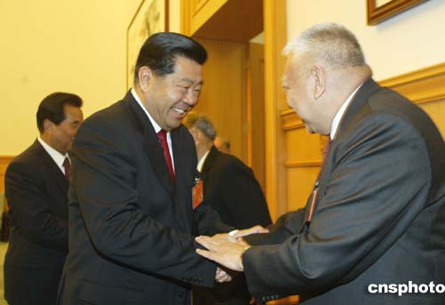 圖:賈慶林和董建華互致問候