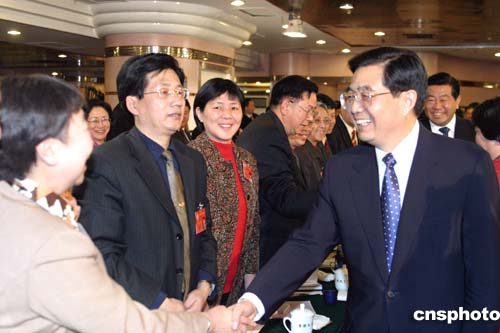 中新社北京三月四日電 中共中央總書記、國家主席、中央軍委主席胡錦濤今天下午看望了參加全國政協(xié)十屆三次會議民革、臺盟、臺聯(lián)界委員,并參加聯(lián)組會,聽取委員們的意見和建議。他強調(diào),我們要堅持以鄧小平理論和“三個代表”重要思想為指導,繼續(xù)貫徹“和平統(tǒng)一、一國兩制”的基本方針和現(xiàn)階段發(fā)展兩岸關(guān)系、推進祖國和平統(tǒng)一進程的八項主張,繼續(xù)以最大的誠意、盡最大的努力爭取和平統(tǒng)一的前景,同時絕不容忍“臺獨”,絕不允許“臺獨”分裂勢力以任何名義、任何方式把臺灣從祖國分割出去。