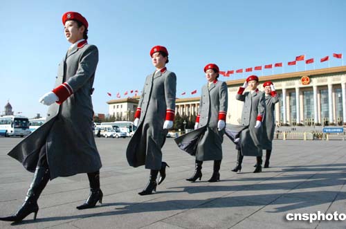 圖:北京會(huì)議中心禮儀小姐亮相天安門廣場(chǎng)