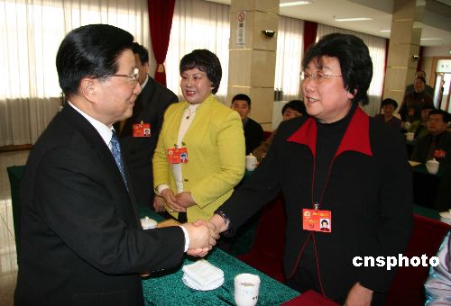 中新社北京三月四日電 中共中央政治局常委吳邦國(guó)、溫家寶、曾慶紅、黃菊、吳官正、李長(zhǎng)春、羅干四日下午分別看望出席全國(guó)政協(xié)十屆三次會(huì)議的委員,并參加了分組討論,與政協(xié)委員共商國(guó)是。