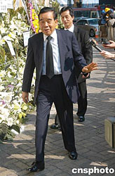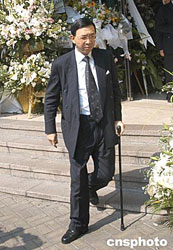 喪禮今早八時開始,以佛教儀式進(jìn)行。靈堂內(nèi)外放滿各界祭送的花圈。