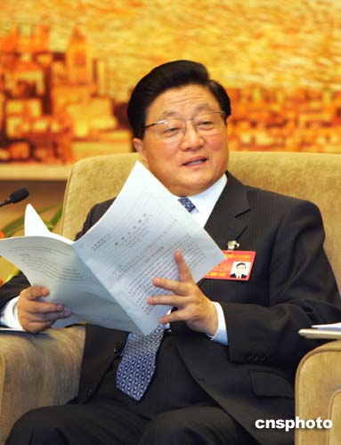 圖:黃菊與上海代表一起審議政府工作報(bào)告