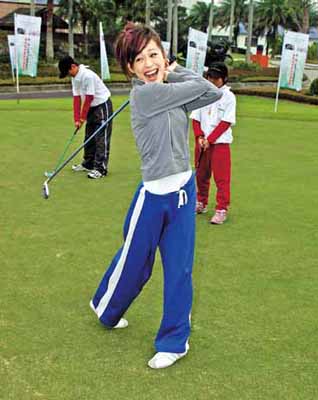 近來忙著宣傳“Honey”專輯的王心凌昨(9)日開心應(yīng)兒童福利聯(lián)盟之邀,前往高爾夫球場(chǎng)大展球技,同行小朋友忙著要“心凌姊姊”簽名,簽完帽子簽T恤,少少10個(gè)人花了快20分鐘才搞定,讓她揮筆比揮桿手還酸。