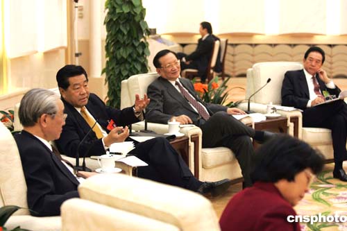 中新社北京三月十日電 題:賈慶林與臺灣代表談兩岸交流合作