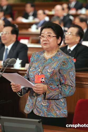 十屆全國(guó)人大三次會(huì)議三月十三日在北京人民大會(huì)堂舉行第四次大會(huì),胡錦濤在會(huì)上當(dāng)選中華人民共和國(guó)中央軍事委員會(huì)主席。顧秀蓮副委員長(zhǎng)主持會(huì)議。作者:毛建軍