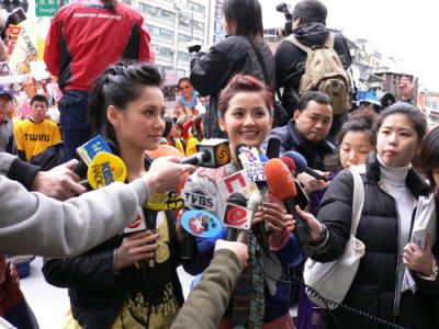 舉行活動當(dāng)日,唱片公司準(zhǔn)備了近三層樓高度的Twins巨型熱氣球,現(xiàn)場更準(zhǔn)備了登高機(jī)讓Twins在高處放巨型氣球,而氣球升起象征十萬連署成功。同時,“英皇娛樂”租下巨型電子墻首播她們最新的主打歌《見習(xí)愛神》。Twins首次在臺灣出席大型活動便要登高,均表示十分害怕。