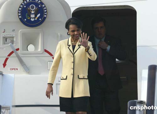 圖:美國國務(wù)卿賴斯抵達(dá)北京