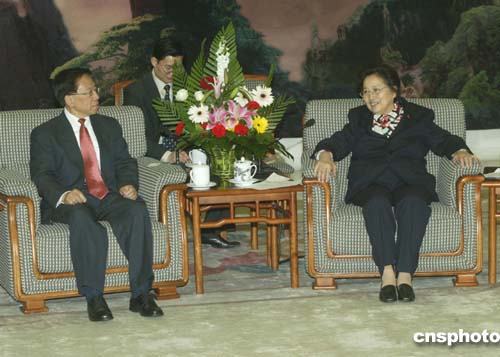三月二十二日,全國人大常委會副委員長何魯麗在北京人民大會堂會見吳顯揚、關(guān)其煉團長率領(lǐng)的芝加哥中華會館訪華團。作者:史利