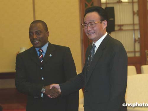 圖:吳邦國會見剛果民主共和國總統(tǒng)卡比拉