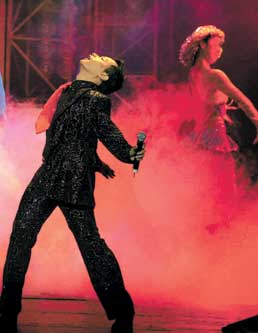《胭脂扣》有一場戲,是醇酒美人。花客們都舉杯與那紅牌阿姑一干,鏡頭對準了女主角,她惟有干了。雖然是茶,但每回仰首而盡,五六回之后,也真難受。而一桌的演員呢,有喝了的,有喝一兩口的,也有沾沾唇而已。不知在第幾回了,我留意到男主角(張國榮)總是把那道具酒也干了,然后意亂情迷。當導演一喊“CUT”,他便把口中的酒,回吐于酒杯中。下一回,又換一杯,重新意亂情迷。其實每當拍到飲食場面的戲時,除了新丁,誰都不會來真的。這番卻特別的感覺到了,主要因為他的“姿態(tài)”,他若無其事,不動聲色,乘人不覺。一秒鐘之前,他還要以為這真是世上最好的酒、最好的人。戲還是戲,未了便悄悄地抽身退出,戲只是戲。虛幻的,像假的醇酒,惟在道具中打轉,不可能留于胃內反芻。