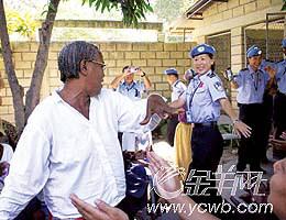 高曉嵐是防暴隊的女戰(zhàn)斗隊員,來自北京市公安局海淀分局,去年11月31日,她和十幾名隊員到駐地附近一家教會慈善學校和老人活動點,開展社區(qū)警務(wù)活動。見到中國維和警察,老人們高興地鼓著掌、唱著歡快的歌迎接他們,蒙古族的高曉嵐為老人們動情的歌聲所感染,不由自主地在歌聲中跳起了蒙古族舞蹈。這時,一位老太太突然走出人群,一邊唱著一邊與她一起翩翩起舞。老人是那樣的熱情和奔放,她倆在周圍更加激越的歌聲和掌聲中忘我地跳著……
