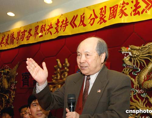 當?shù)貢r間三月二十六日,美東僑學(xué)商各界舉行誓師大會堅決支持《反分裂國家法》,旅美臺胞成功教授指出,“臺獨”勢力歪曲《反分裂國家法》,意在誤導(dǎo)臺灣民眾。作者:龔文謨