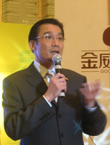 中新網(wǎng)3月28日電 剛在《太行山上》扮演硬漢軍人的著名香港影星梁家輝,于3月28日下午出現(xiàn)在人民大會堂浙江廳,名為“賞心悅目,金威男人”的發(fā)布會正在這里舉行。