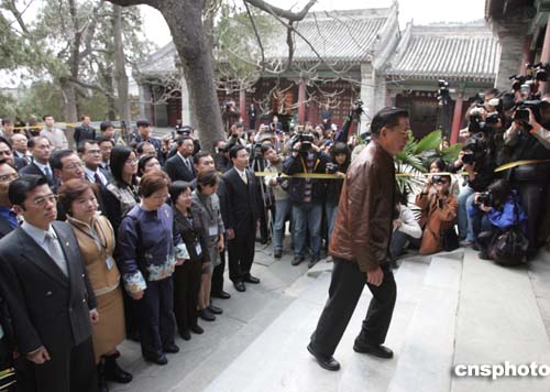 中國國民黨副主席江丙坤三月三十一日攜參訪團全體成員,拜謁北京香山碧云寺內(nèi)的孫中山紀(jì)念堂,并敬獻(xiàn)花圈。作者:毛建軍