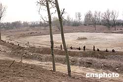 | 中國國家環(huán)保總局日前聲明,圓明園湖底鋪設(shè)防滲膜工程至今未進(jìn)行建設(shè)項目環(huán)境影響評價,應(yīng)該立即停止建設(shè),充分征詢社會各界的意見,依法補(bǔ)辦環(huán)境影響評價審批手續(xù)。三月三十一日,投資1億元,持續(xù)數(shù)個月的2000余畝圓明園湖底(鋪塑料)防滲水工程開始停工。圖為圓明園福海西側(cè)一角藏龍臥虎,大型機(jī)械余熱方盡。但是,圓明園三園(包括長春園、綺春園),約2000余畝湖底防滲工程已基本鋪設(shè)完成了防滲水塑料,令專家和百姓失望。作者:鄒憲