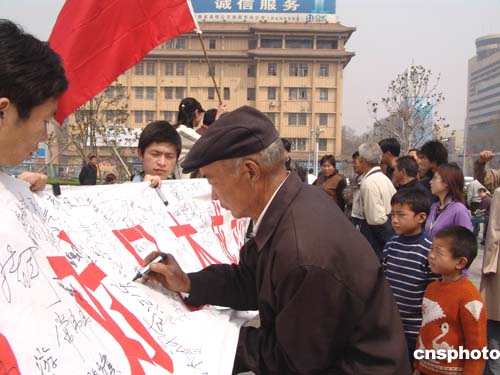 圖:洛陽街頭數(shù)千人簽名反對(duì)日本成為常任理事國(guó)