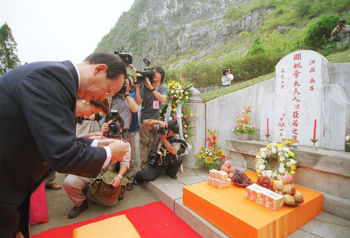 蔣孝嚴(yán)此前也數(shù)度來桂林祭母。最近一次是去年七月二十七日,攜夫人黃美倫來到長眠于桂林市郊區(qū)馬鞍山西側(cè)鳳凰嶺下母親章亞若墓前祭奠母親,告慰九泉之下的母親已了卻認(rèn)祖歸宗的心愿。據(jù)悉,此次蔣孝嚴(yán)大陸之行,在桂林只作短暫停留。四日掃墓結(jié)束后,當(dāng)天下午便離開桂林,飛西安出席當(dāng)?shù)匾粋經(jīng)貿(mào)活動。有消息稱,若時間允許,蔣孝嚴(yán)也可能順道訪國民黨主席連戰(zhàn)的祖母墳?zāi)梗瑸檫B戰(zhàn)的西安之行鋪路。之后會再飛返浙江溪口蔣氏故居祭祖,到毛太夫人墳前掃墓。