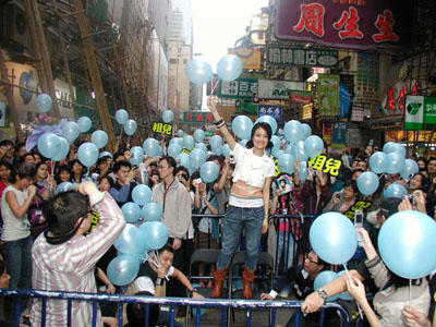 簽名會(huì)期間,突然有一位男歌迷向她求婚,令祖兒有點(diǎn)尷尬,不知所措。這位叫“阿榮”的歌迷,當(dāng)眾跪下向她求婚,與他同來(lái)的一位友人,就替他拿著一張寫(xiě)滿了對(duì)Joey愛(ài)的情信,這位歌迷更是有備而來(lái),準(zhǔn)備了戒指作為求婚之用。主持人問(wèn)到Joey是否第一次收到求婚戒指,她笑言:“都不知道收到多少啦!哈哈。”事后問(wèn)到她有沒(méi)有被他的舉動(dòng)嚇驚?她坦言有點(diǎn)驚,但因她的歌迷過(guò)去都有不同方式向她示愛(ài),千奇百怪,而且很猖狂,早就慣了面對(duì)。記得曾有歌迷送了一個(gè)金牌給她,上面寫(xiě)著“對(duì)你的愛(ài)永不完”,亦有位歌迷寄了一張請(qǐng)?zhí)o她,上面的名字竟然是Joey和那位男方的名字。