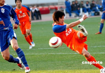 二00五中國中超足球聯(lián)賽揭幕戰(zhàn)四月二日下午在山東省體育中心體育場進行,由山東魯能泰山隊主場迎戰(zhàn)上海永大隊。經(jīng)過九十分鐘的比賽,山東魯能泰山隊?wèi){借李金羽補時階段的入球二比一力克上海永大隊,取得二00五中超足球聯(lián)賽的首場勝利。射進獲勝一球的泰山隊李金羽在比賽中表現(xiàn)神勇。作者:宋衛(wèi)東