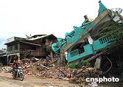在印度尼西亞尼亞斯島的古農(nóng)西托利災(zāi)情整體來說,比大海嘯造成的損失要大得多。當(dāng)?shù)厝四壳肮烙,地震的損失只及海嘯的百分之三十,但市區(qū)建筑物的破壞程度,古農(nóng)西托利卻比班達(dá)亞齊更嚴(yán)重。作者:洪少葵