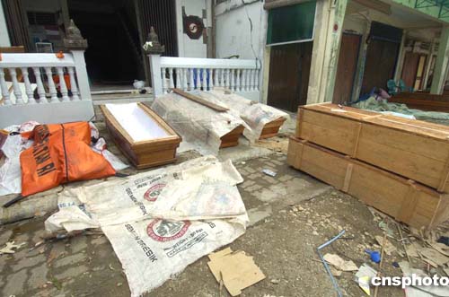 在印度尼西亞尼亞斯島災(zāi)區(qū),死尸挖掘出來后放在路旁,沒有及時運走,散發(fā)惡臭,影響環(huán)境衛(wèi)生。作者:鄧慶樂